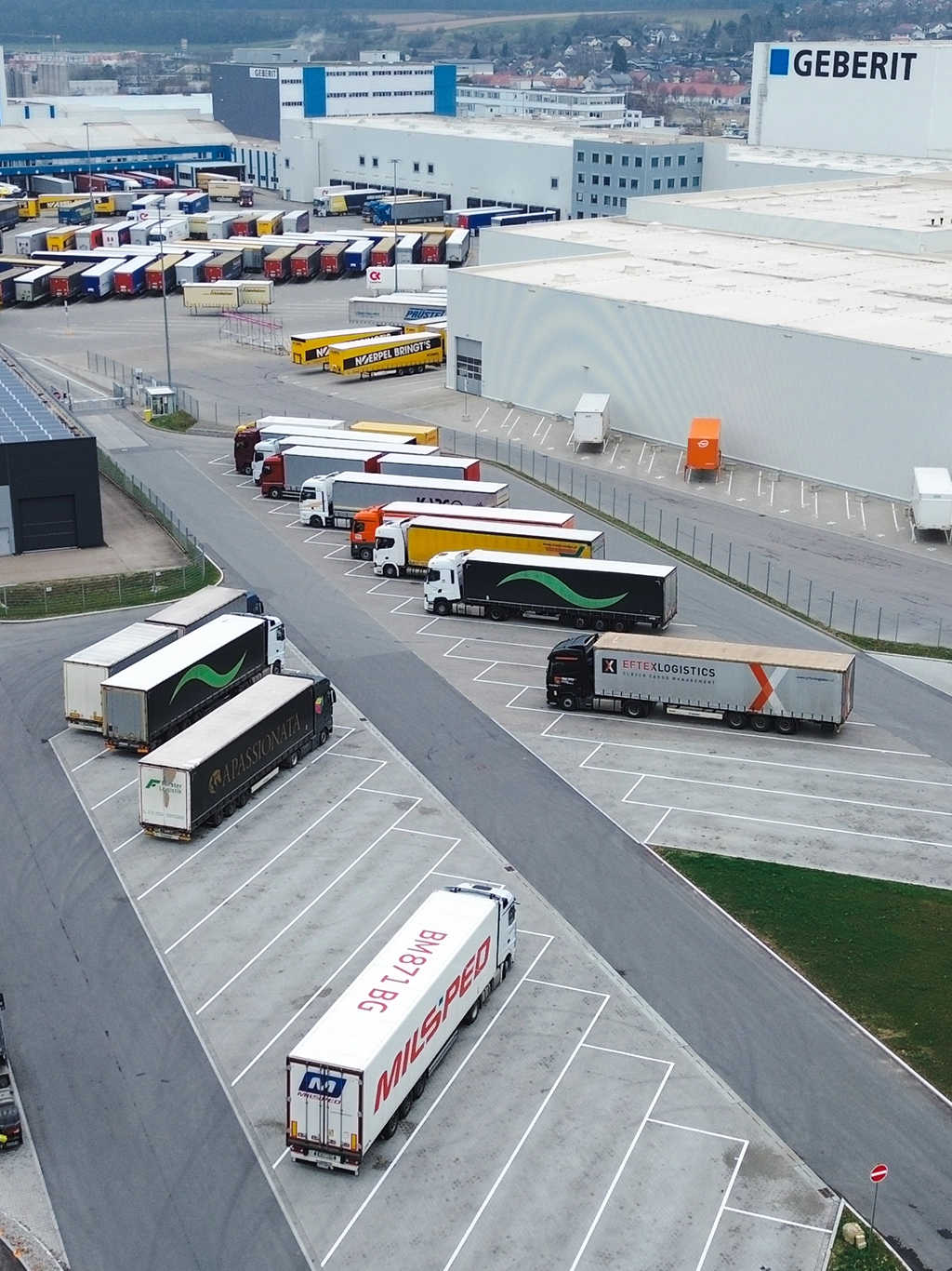 250 trucks drive in and out of the Geberit Group logistics centre in Pfullendorf.
