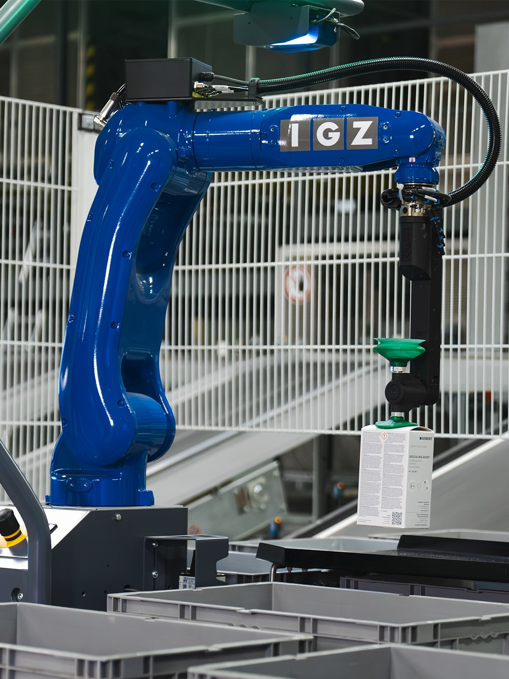 With its suction pads, the picking robot can move cardboard boxes weighing up to 4.5 kg.